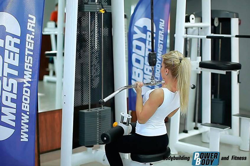 Тяга верхнего блока: техники выполнения к груди и за голову