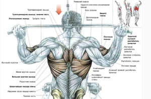 Широчайших мышц. Это целевая мышечная группа. И наша задача сосредоточиться именно на их работе.