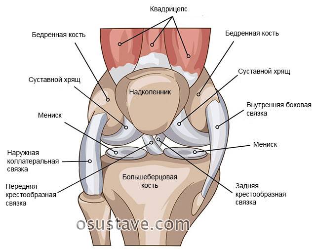 Анатомическое строение колена. Нажмите на фото для увеличения