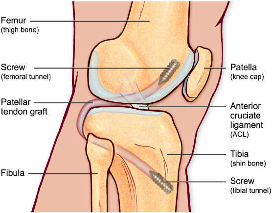- В тяжелых случаях с переломом показана комбинированная операция на связки колена. Она заключается в восстановление целостности связки и скрепление костных отломков с помощью винтов и скоб.