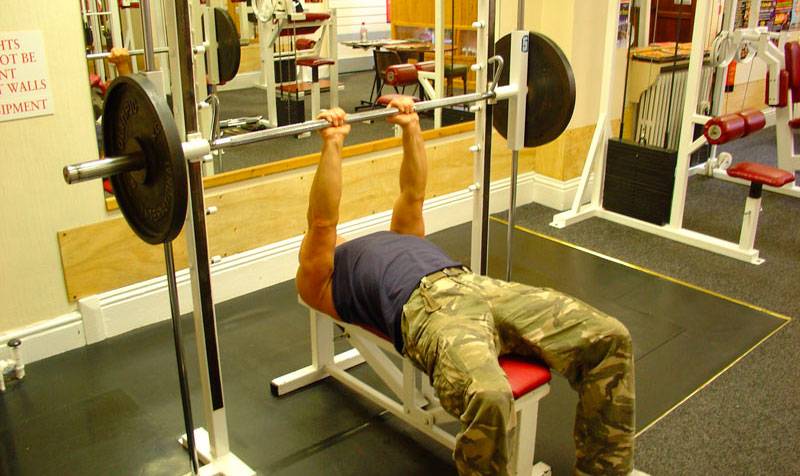 Данное упражнение очень травмоопасно, поэтому выполняется оно, как правило, опытными и выступающими спортсменами. Его также можно заменить жимом гантелей.