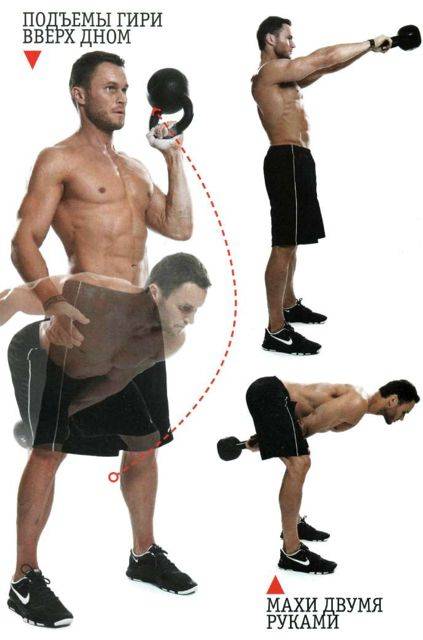 Важно различать работу над силой и над массой, ведь это два разных направления. В нашем случае используются упражнения с гирей, которые максимально задействуют потенциал каждой части тела