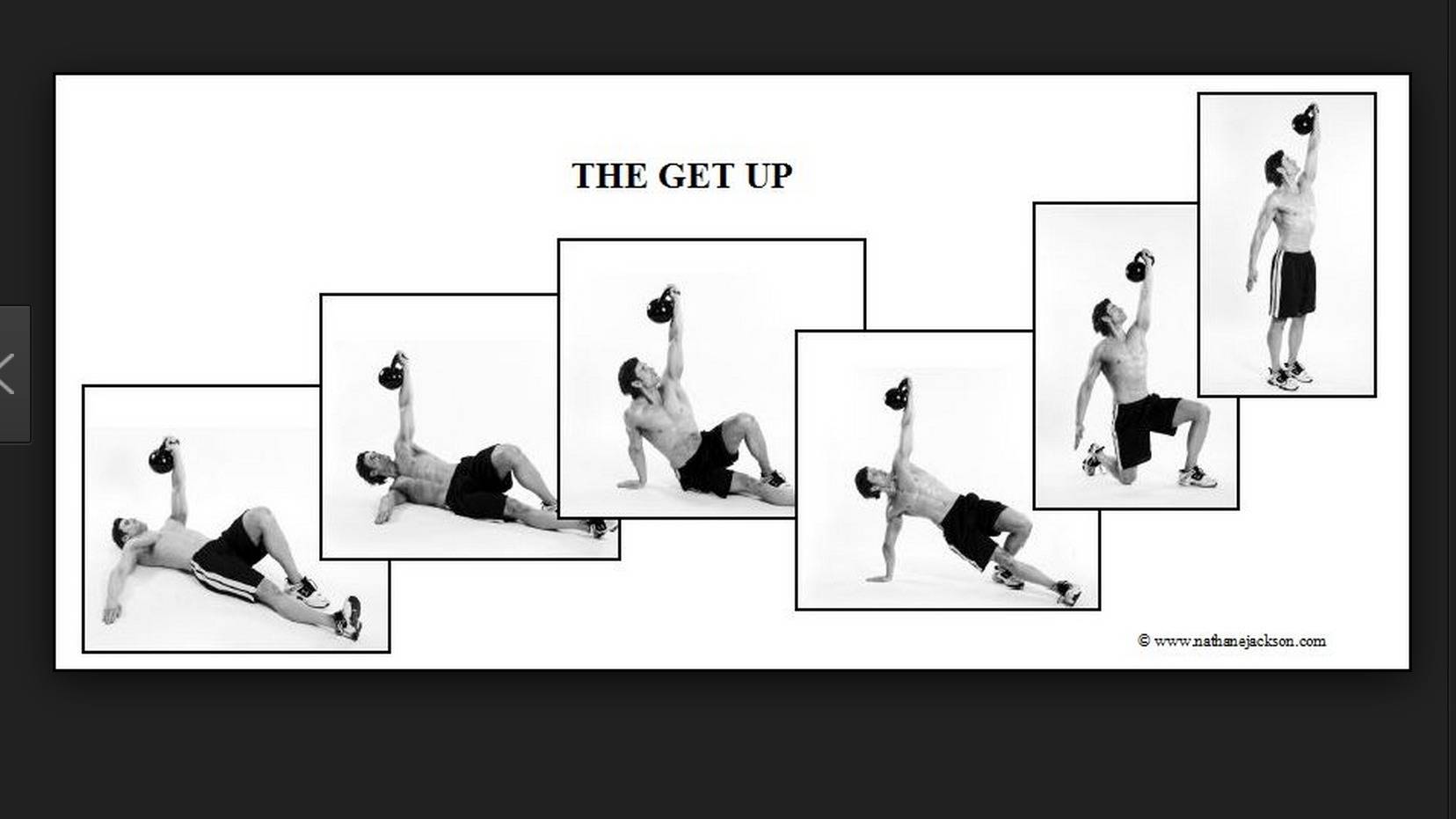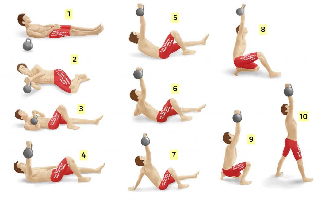 Никуда не торопитесь и разбейте процесс подъёма на части: сперва только до положения сидя, затем до положения стоя (не опускаясь вниз) и потом уже приступайте к полному – с подъёмом и опусканием в исходную позицию. Плюс – небольшие веса для начала и даже, возможно, просто повторение турецкого подъёма несколько десятков раз (не за одну, а за несколько тренировок) без веса.