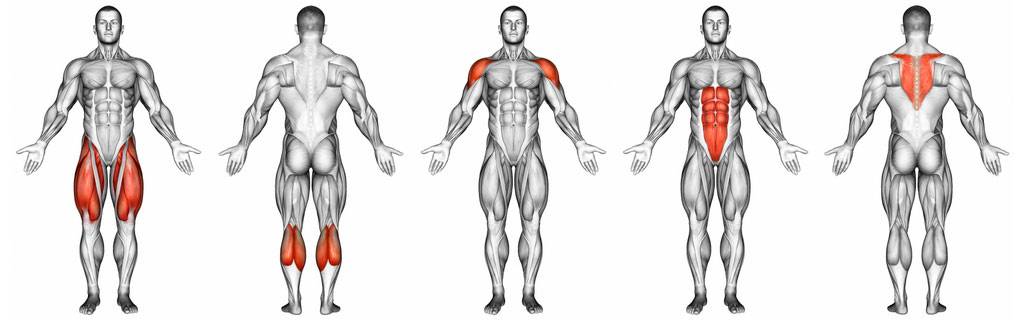 Во-первых — это упражнение практически на все мышцы тела с особым акцентом на мышцы кора