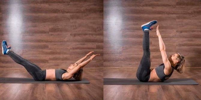 - Подъем с полностью выпрямленными ногами и оттянутыми носочками;