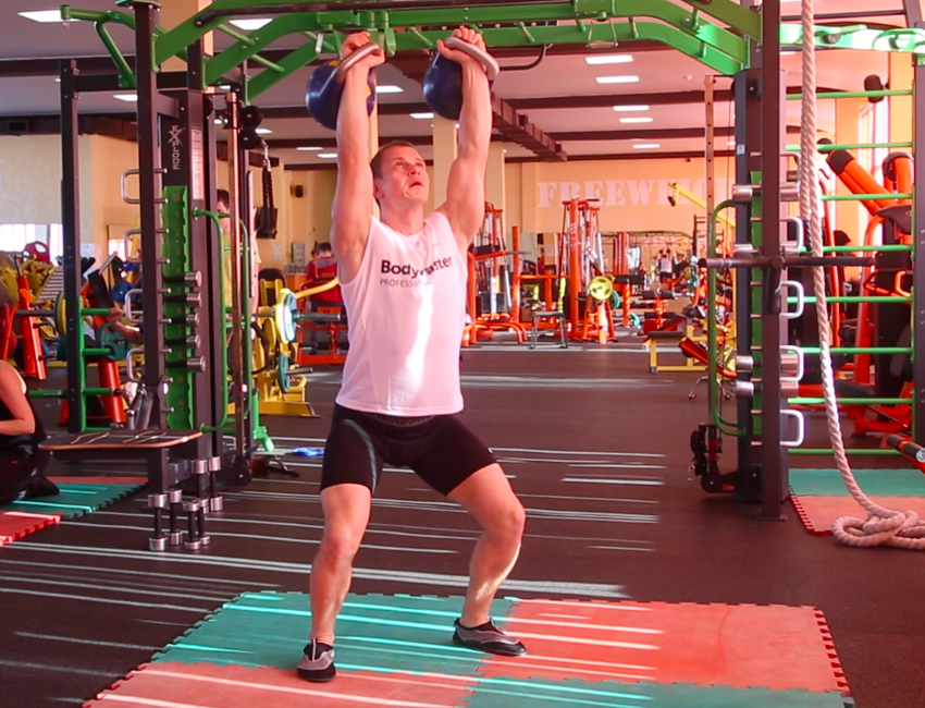 - Удерживайте гирю максимально близко к корпусу. Таким образом удается сохранять правильный центр тяжести.